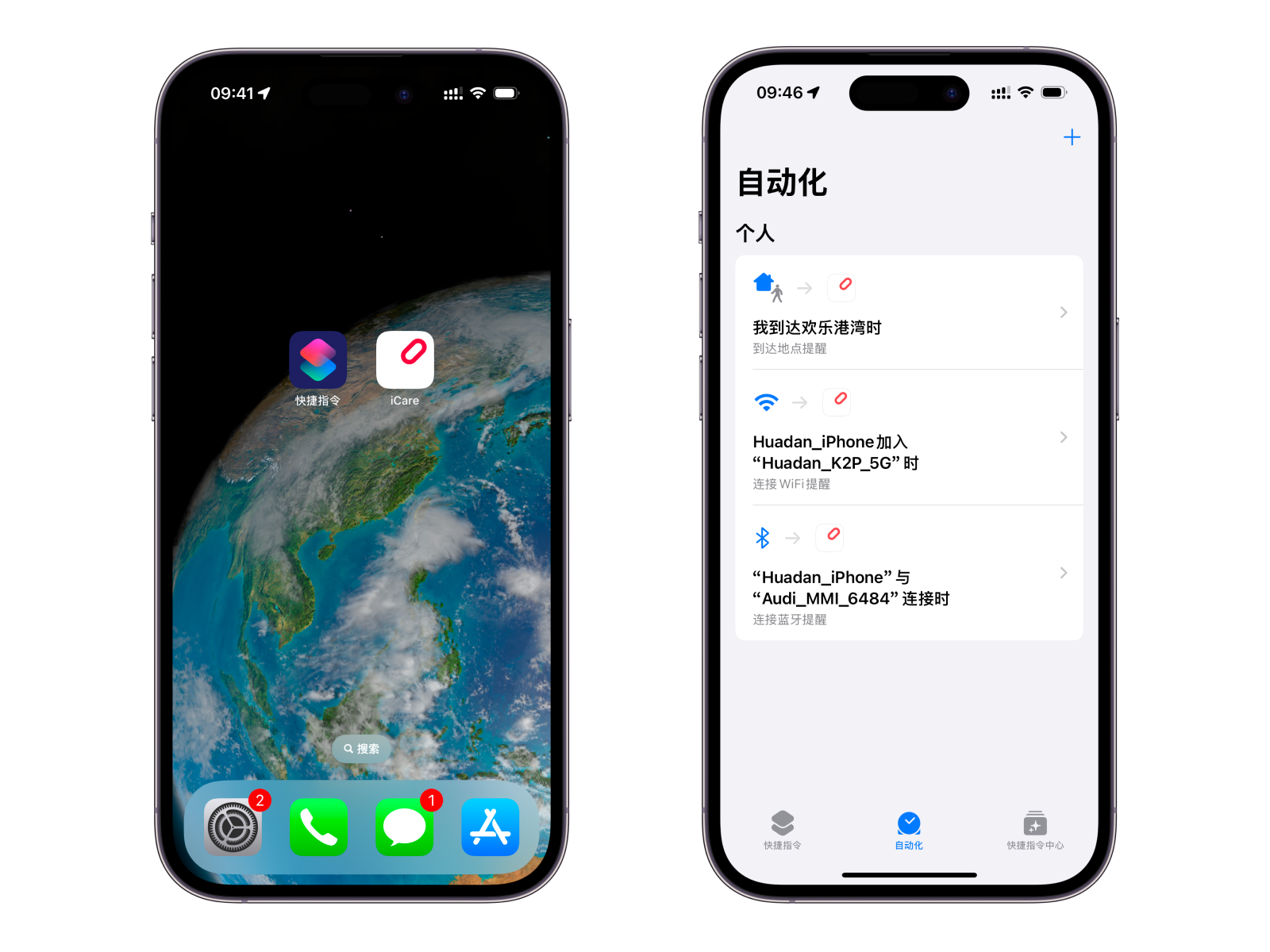 1. 前往快捷指令 app，点击底部 「自动化」 ，点击右上角 「+」 新增一条自动化